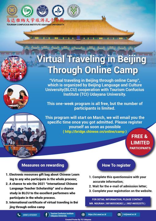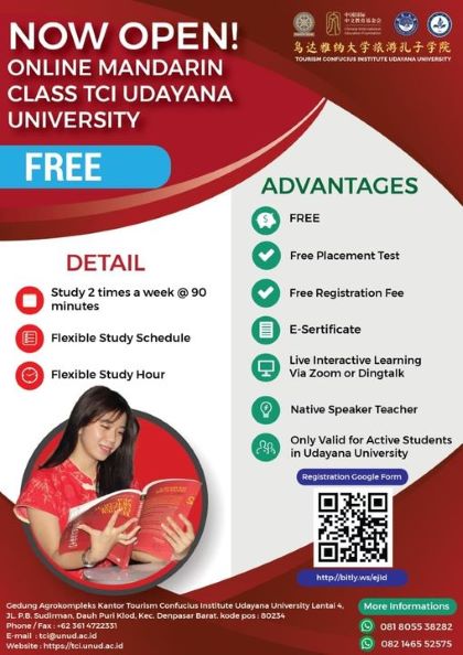 ONLINE MANDARIN CLASS TOURISM CONFUCIUS INSTITUTE UDAYAN AUNIVERSITY FOR ALL OF STUDENT IN UDAYANA U